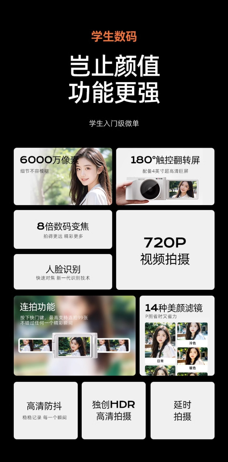Mutrain 學生 校園 高清數位相機 兒童相機 卡片機,時空迴廊玩具