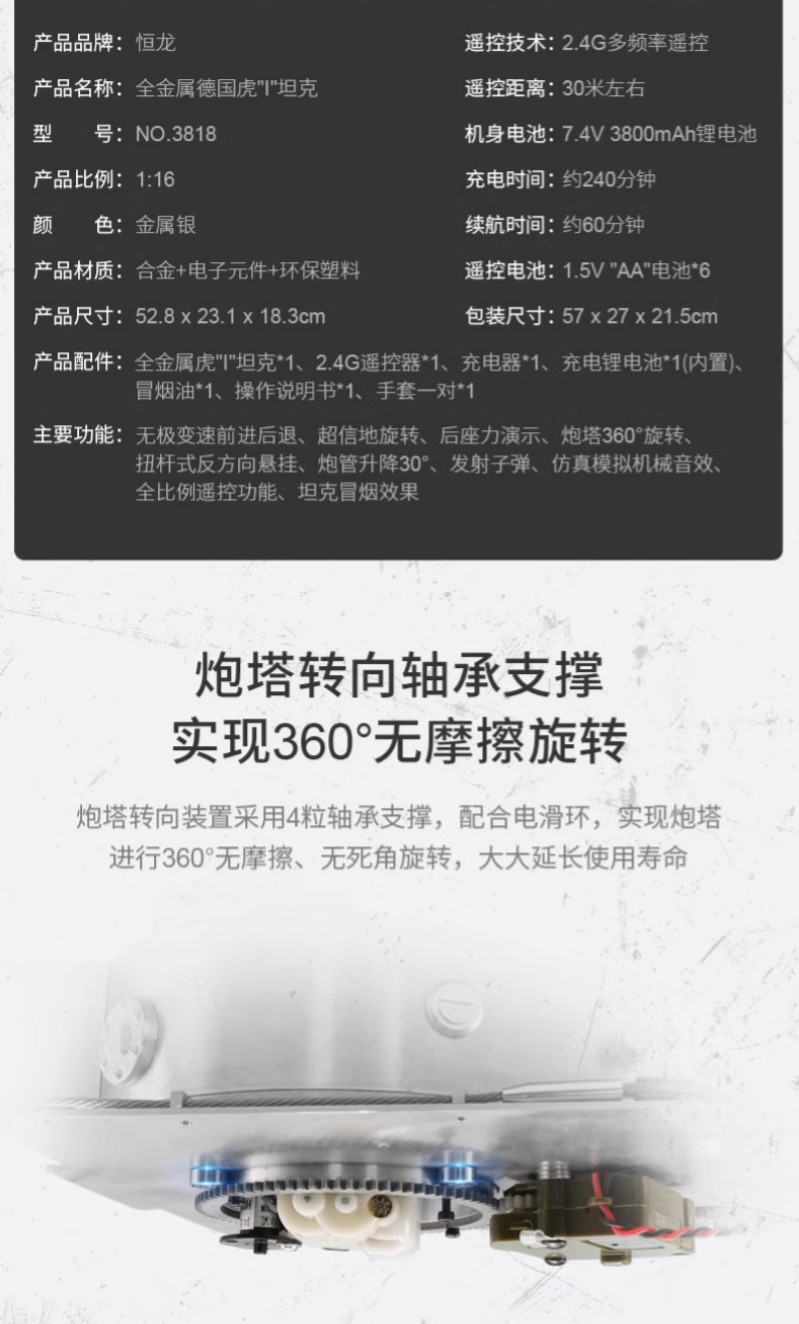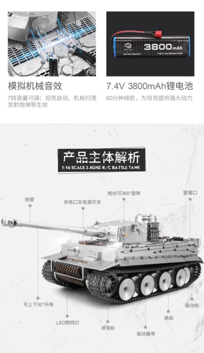 1:16 全金屬坦克 德國虎式金屬遙控坦