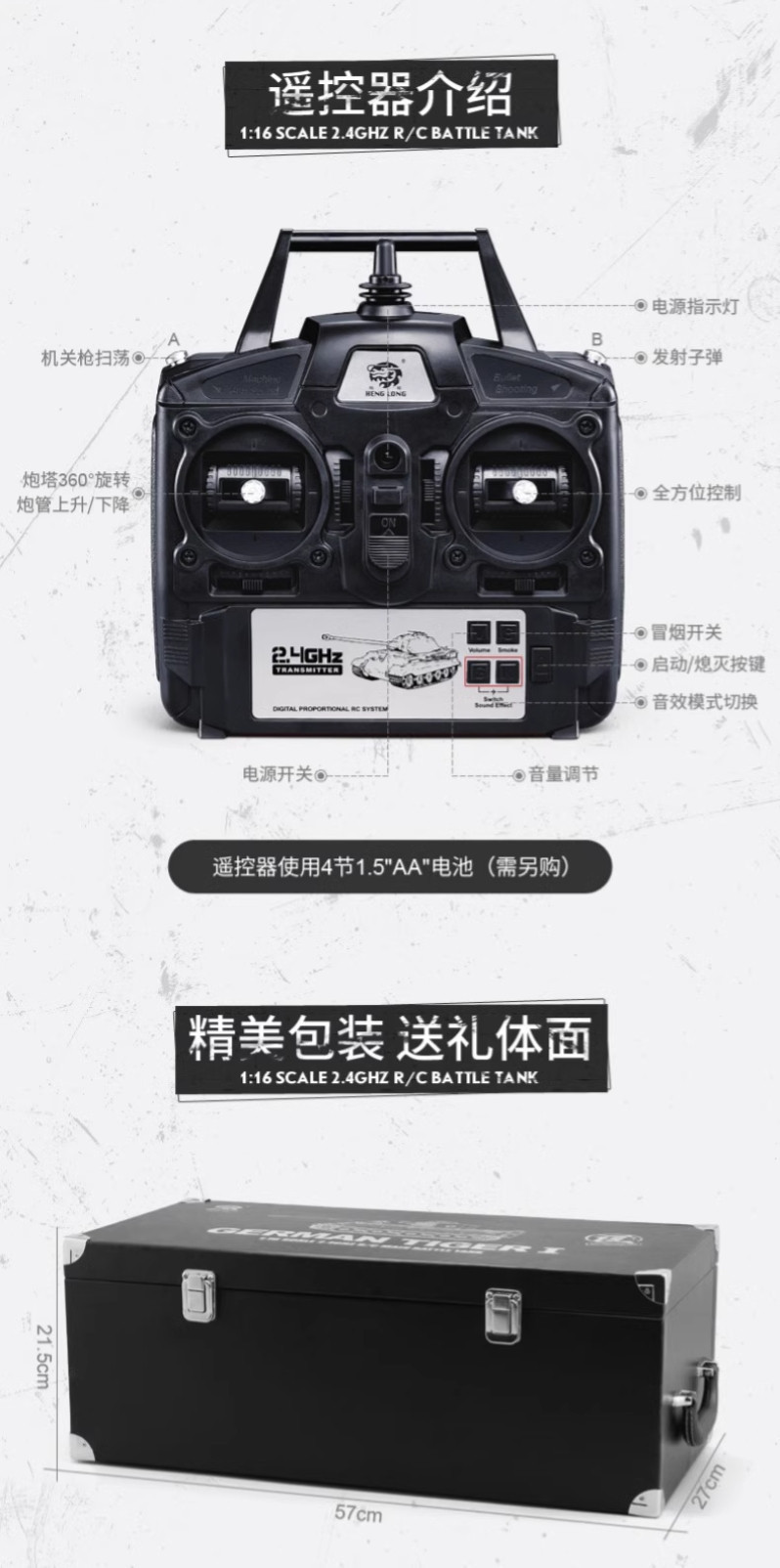 1:16 全金屬坦克 德國虎式金屬遙控坦,時空迴廊玩具