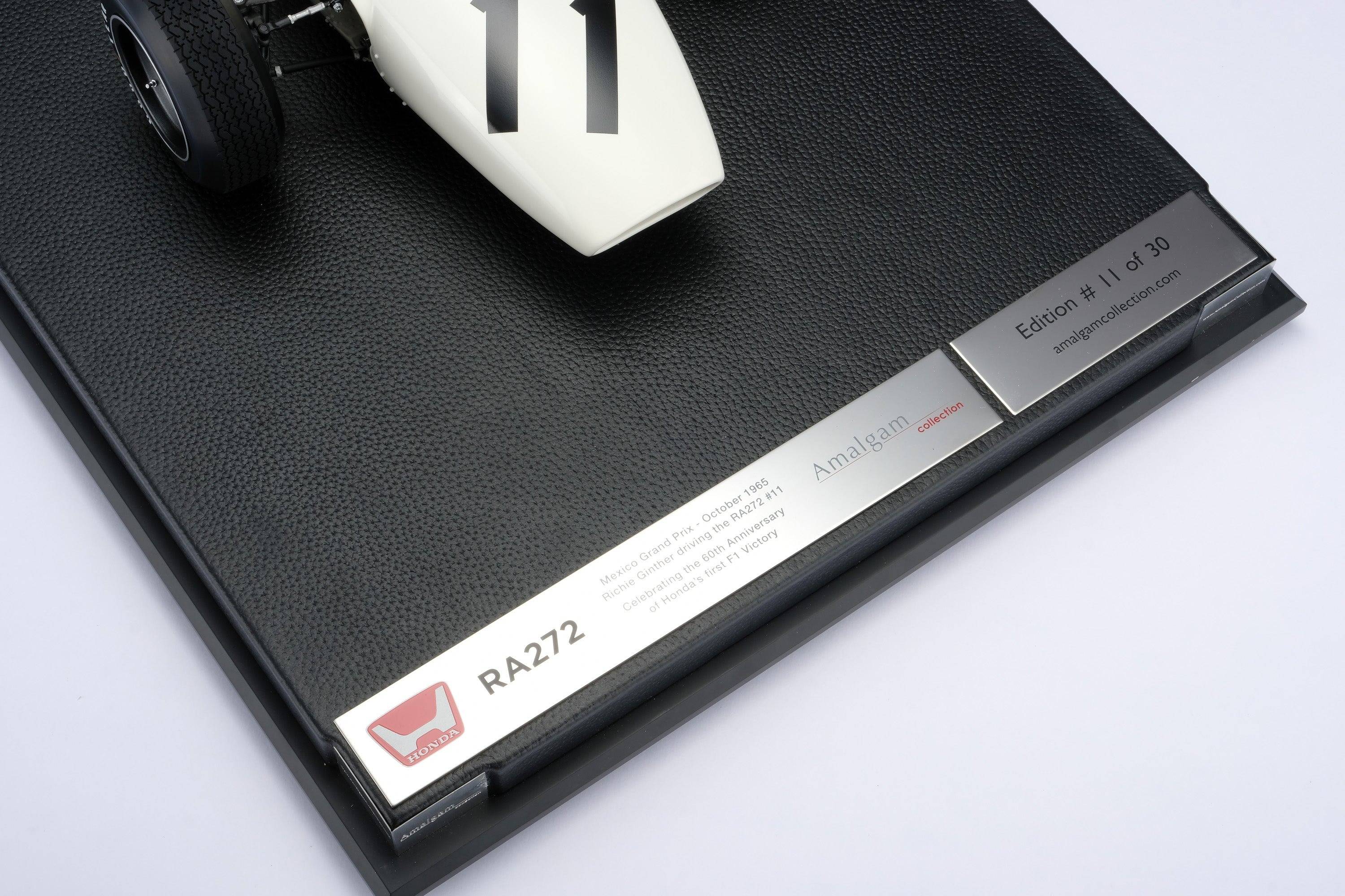 - 為慶祝本田在1965年墨西哥大獎賽上取得歷史性勝利60週年,Amalgam Collection榮幸地與本田汽車公司合作,推出1:8和1:18比例的RA272賽車模型,這款傳奇賽車曾由里奇·金特駕駛奪得冠軍。這次獨家合作將Amalgam享譽全球的精湛工藝與本田的原創工程技術完美融合,打造出博物館級的複刻模型,精準還原了這款為日本贏得首個F1冠軍的賽車的每一個細節。該車型基於本田收藏館中RA272F-103原車底盤的掃描數據,並採用精確的CAD數據進行開發,經本田工程師和歷史學家的反覆審核,確保了卓越的還原度。這款限量版模型不僅是對賽車運動史上這一關鍵時刻的致敬,更是對本田不斷追求創新與卓越的精神的頌揚。