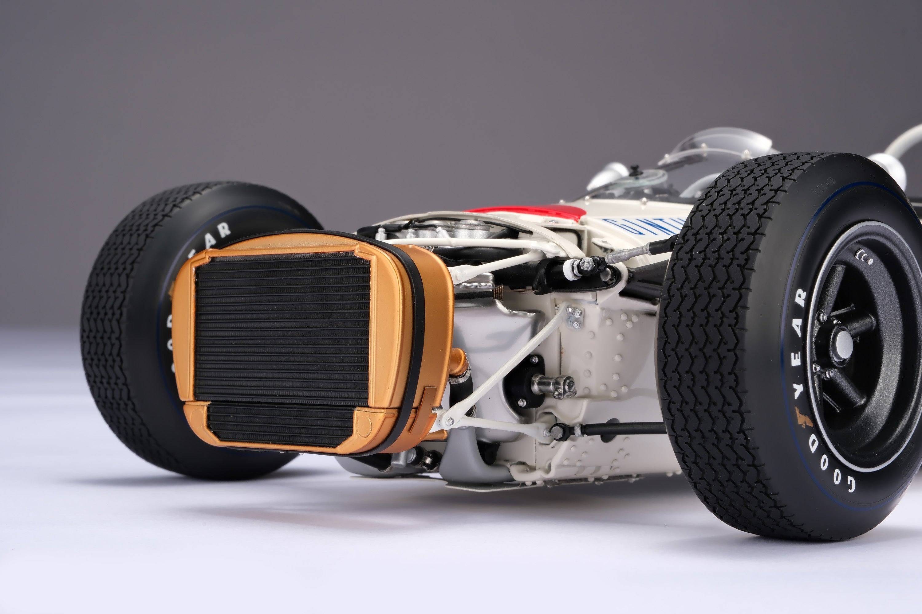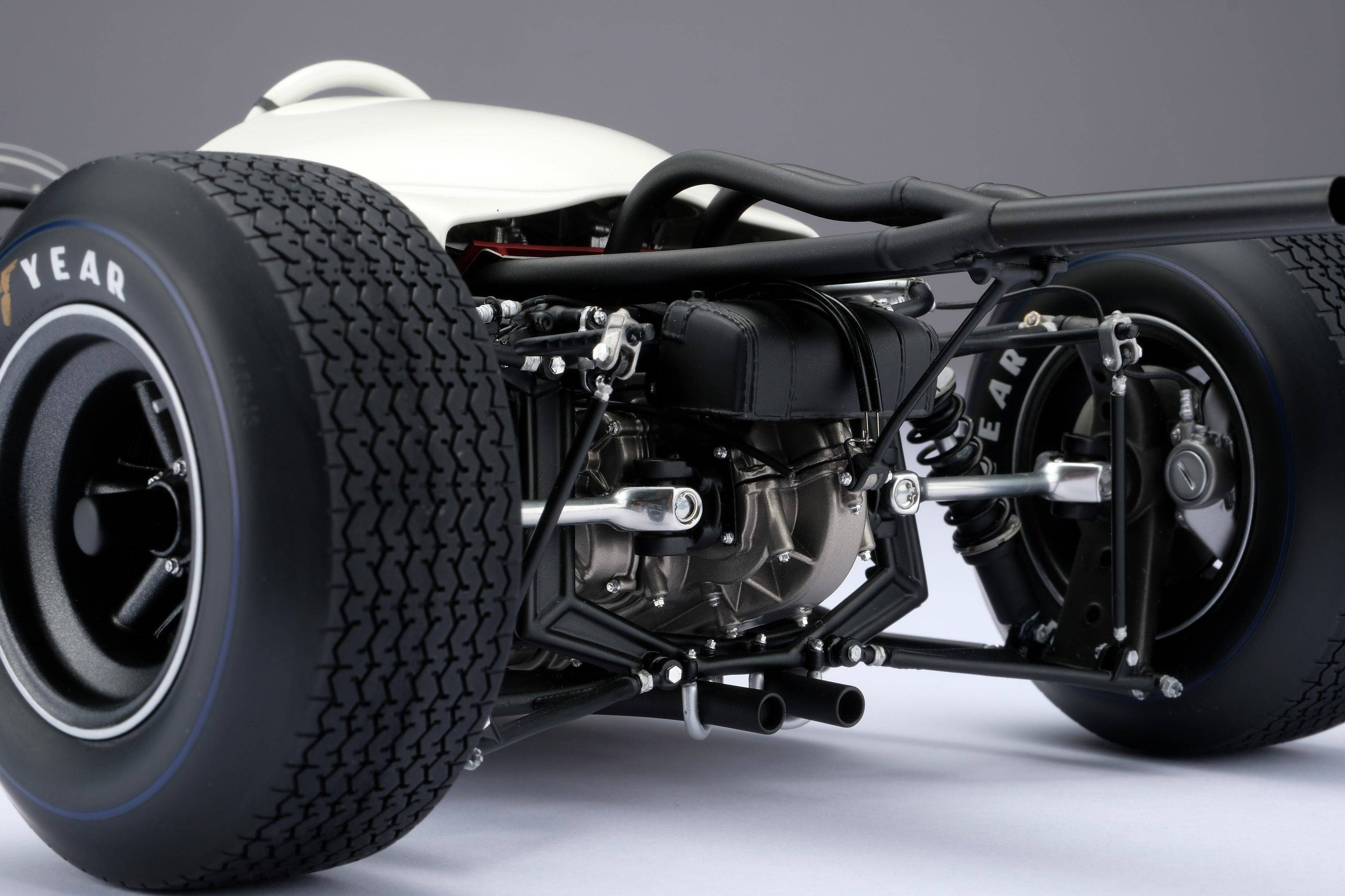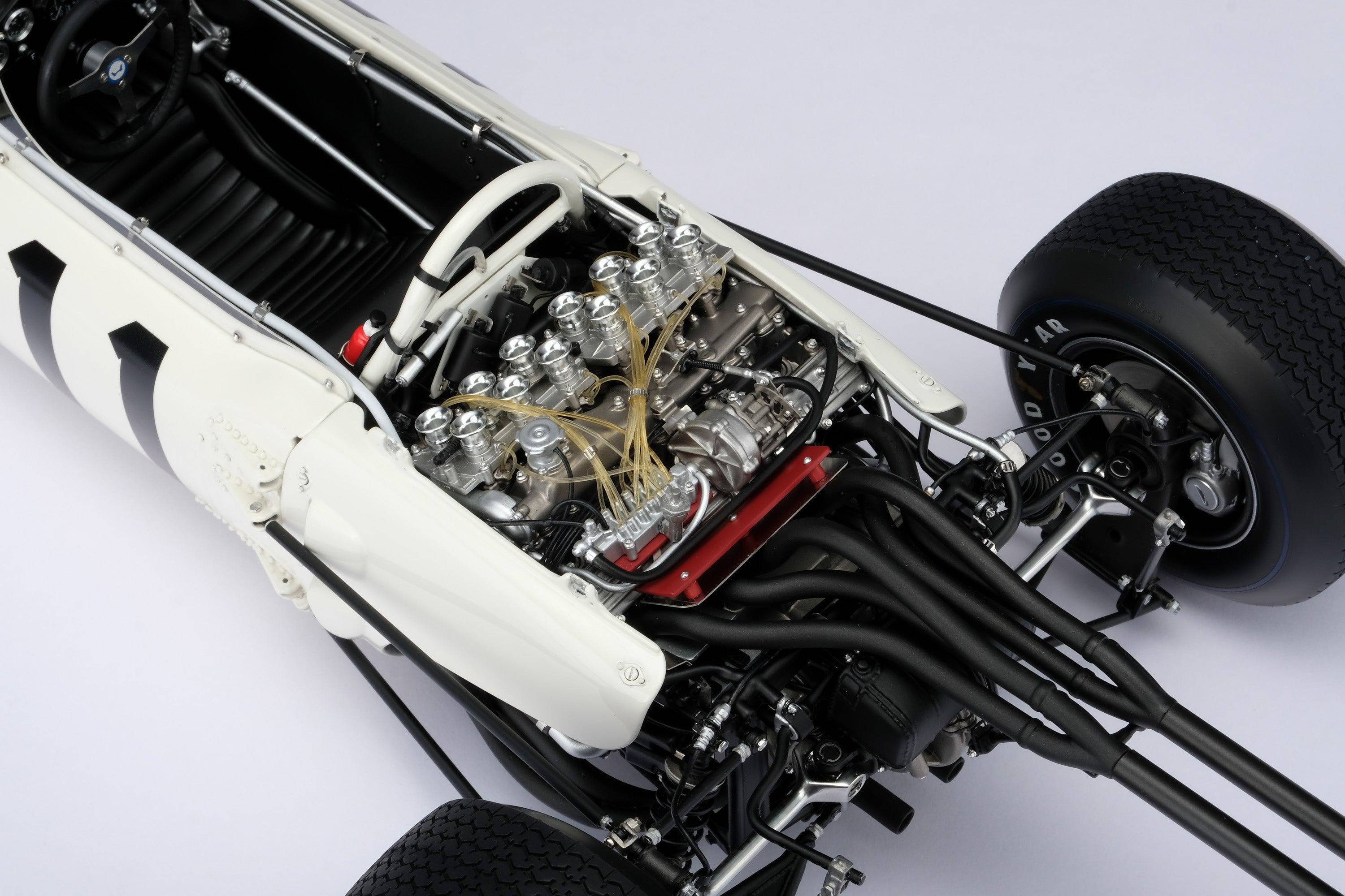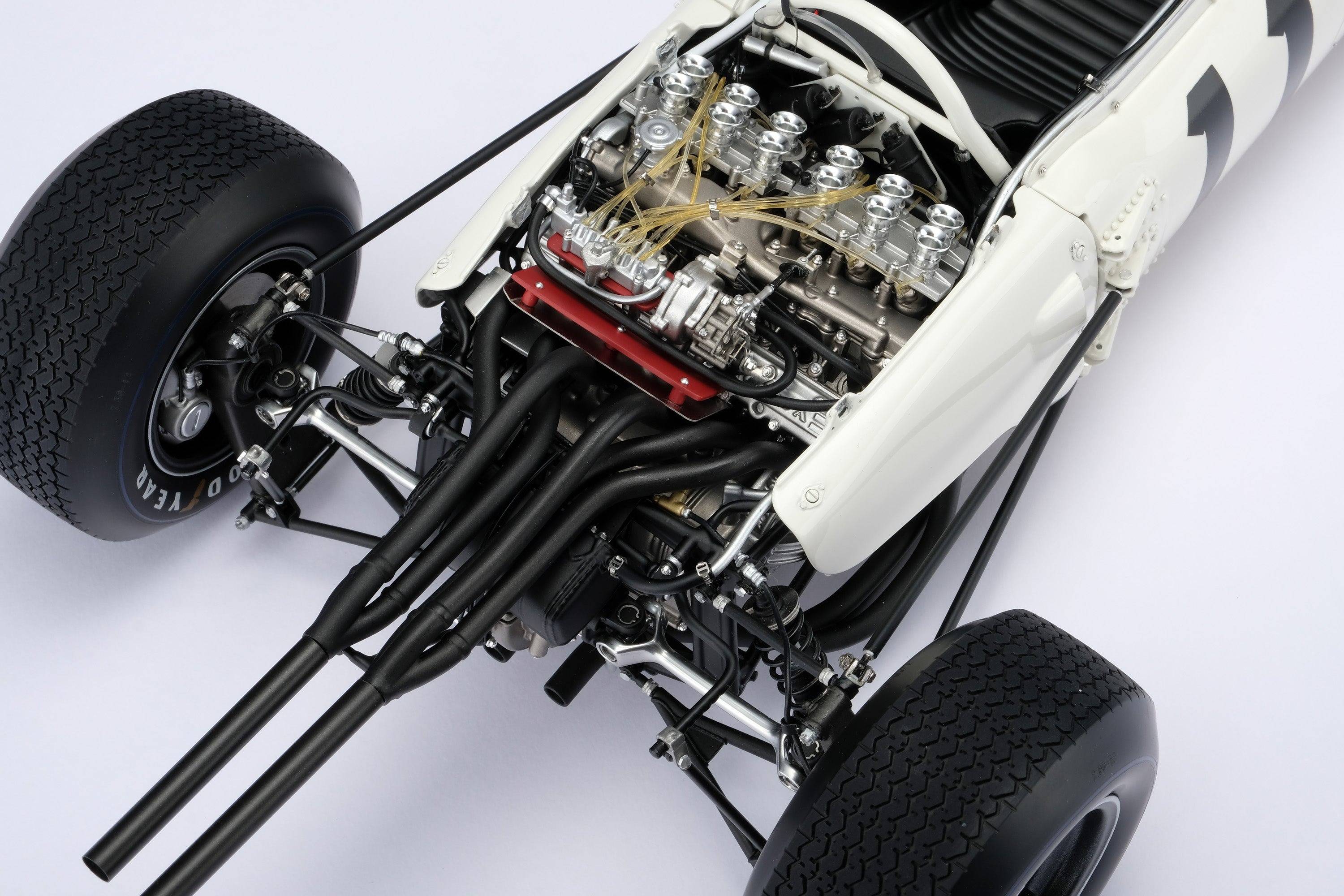 這款模型採用我們自主研發的CAD數據精心手工打造而成,該CAD數據是透過掃描保存在日本茂木本田收藏館的RA272原型車底盤(RA272F-103)而創建的。在Honda Motor Company的協助下,我們忠實地還原了每一個細節,最終的原型車也經過了Honda工程師和歷史學家的嚴格審查,以確保其完全準確無誤。