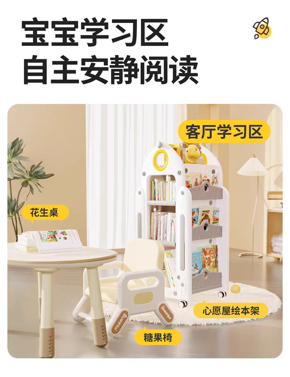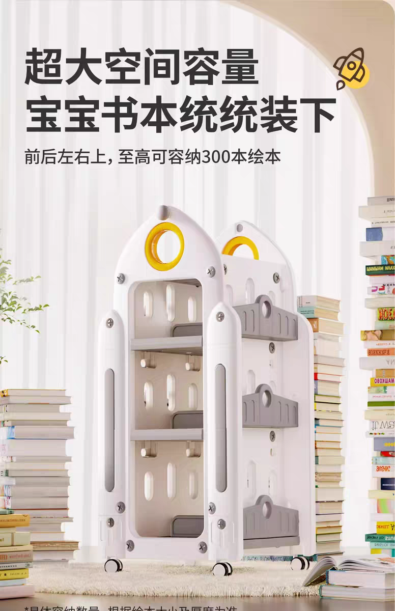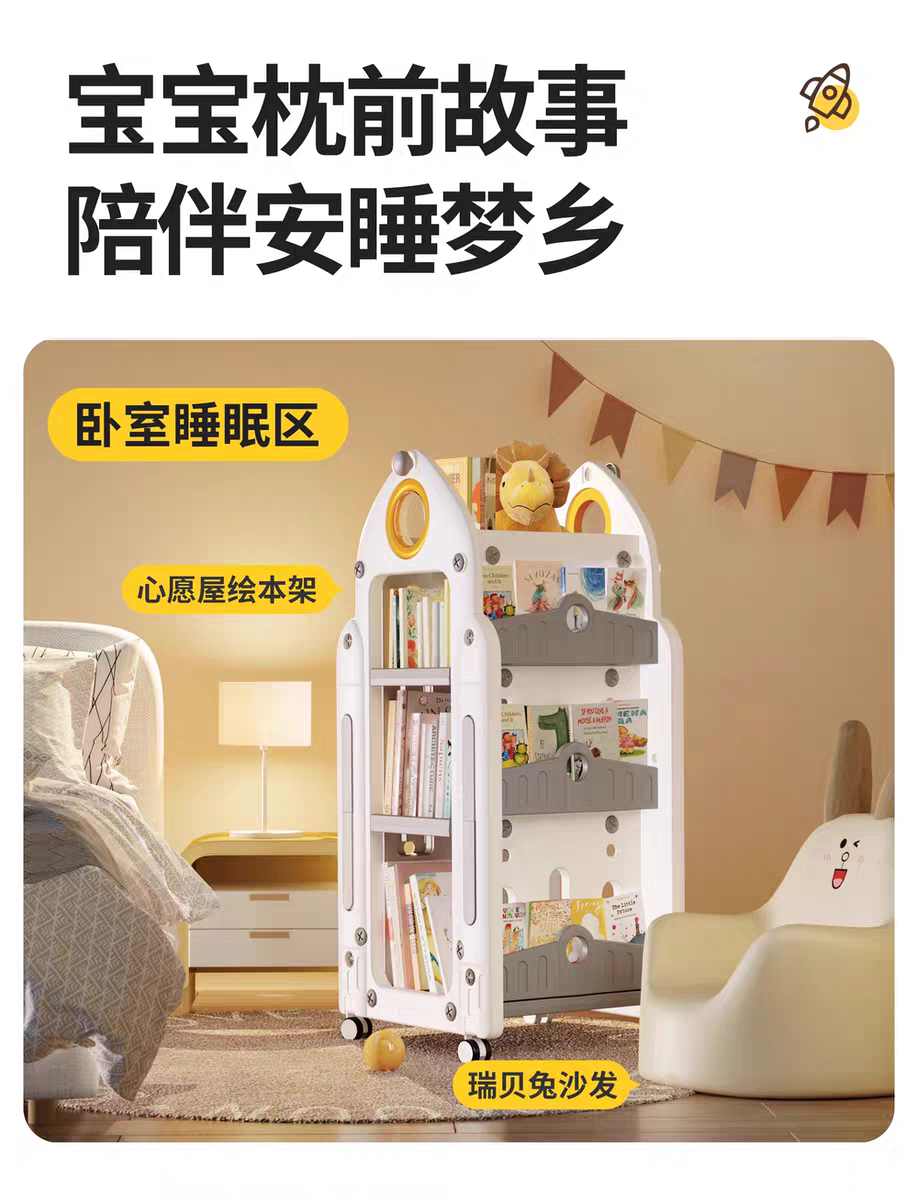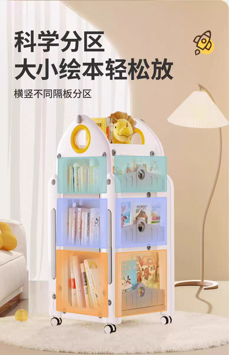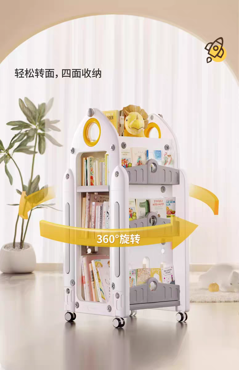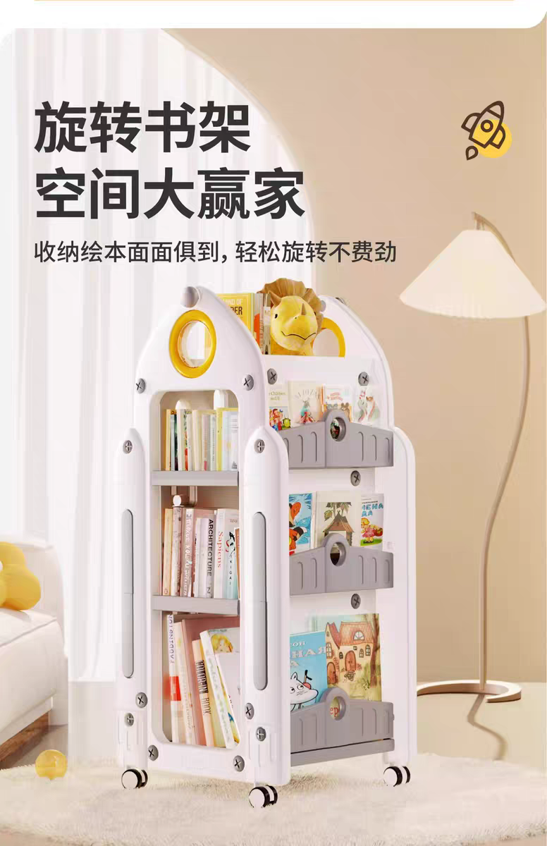兒童書架 家用收納架 旋轉一體落地書櫃 置物架 玩具盒寶寶繪本架,時空迴廊玩具