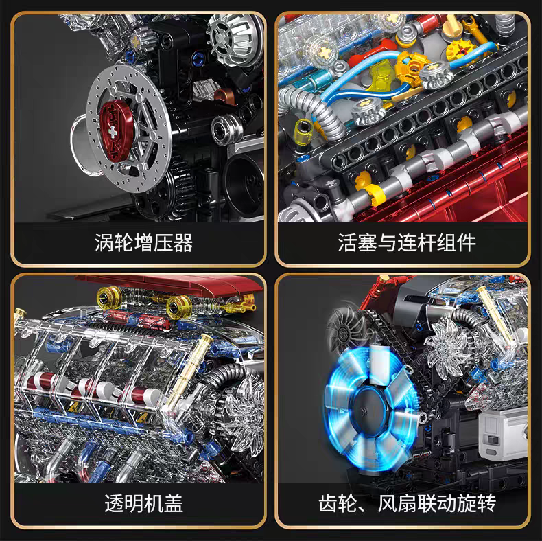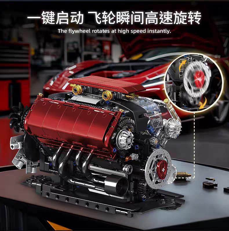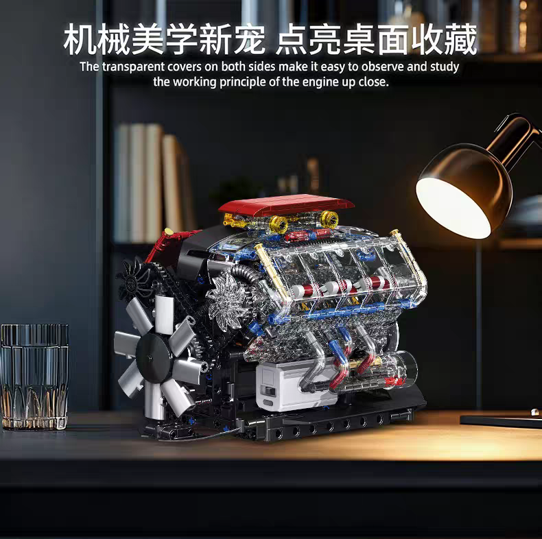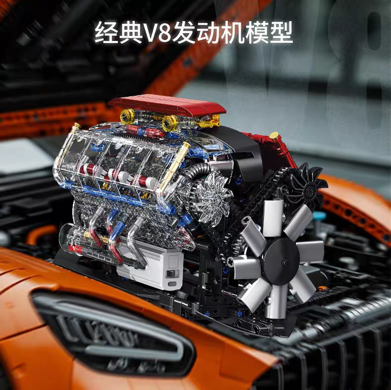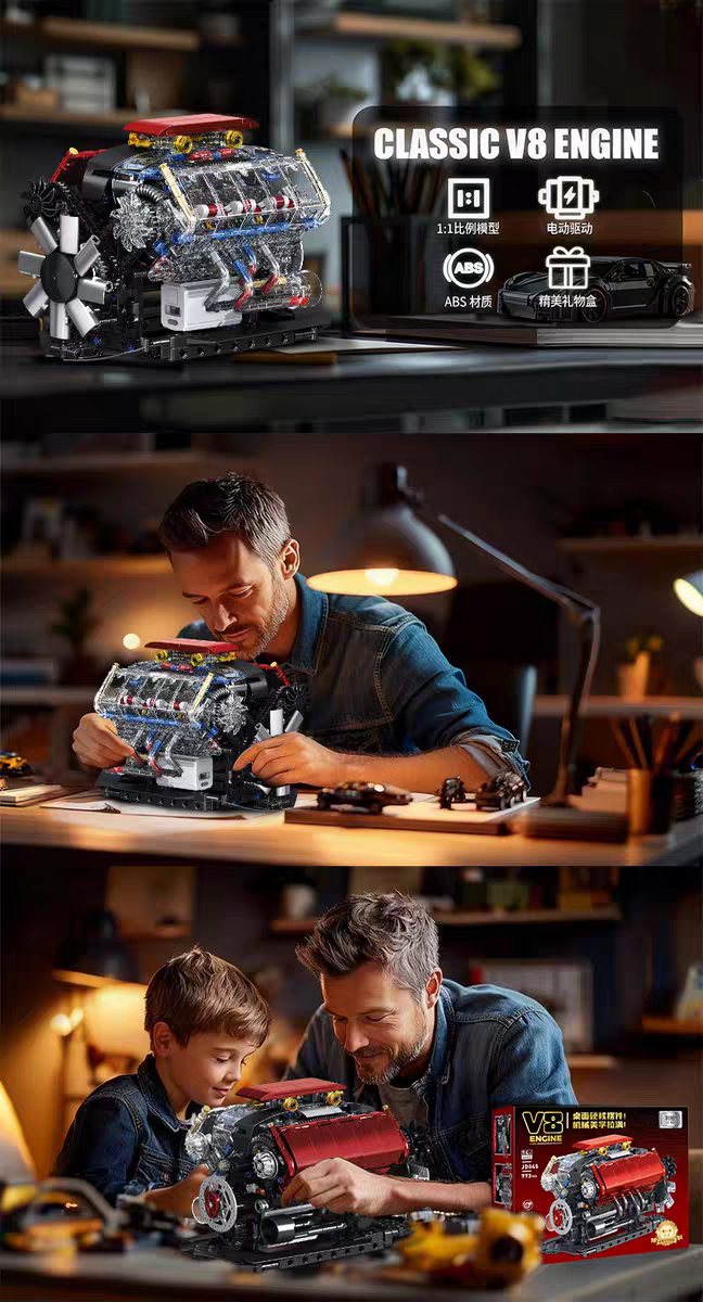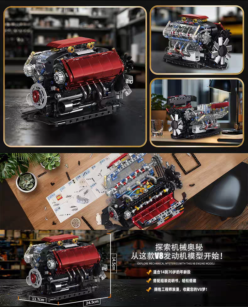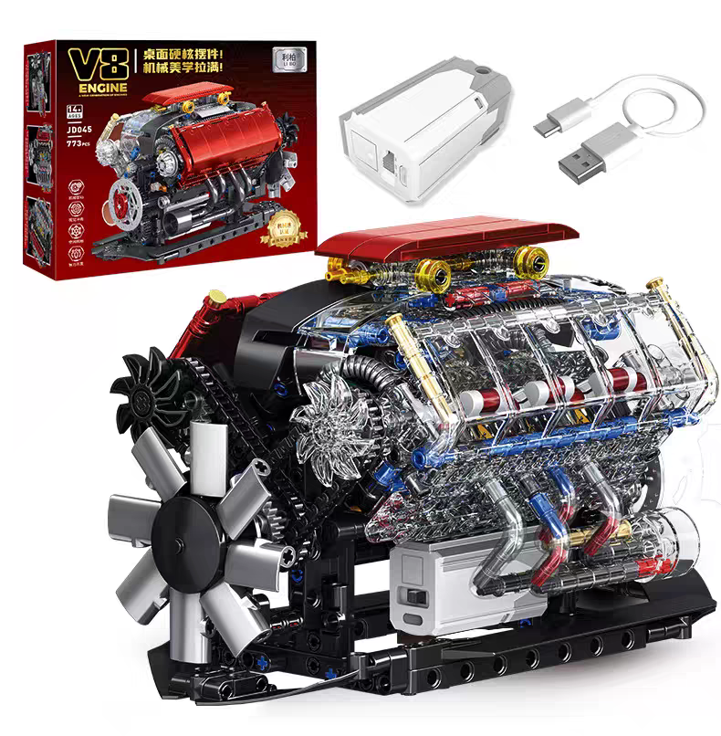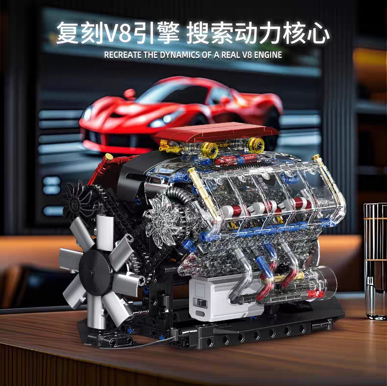 可運轉丨V8引擎模型【773顆粒大件】贈馬達可運轉